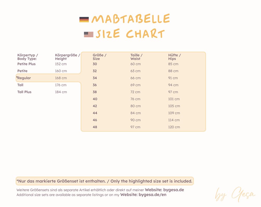 Hinweis: Du kaufst hier das Schnittmuster für den Körpertyp Regular. Jeder Körpertyp wird separat angeboten.