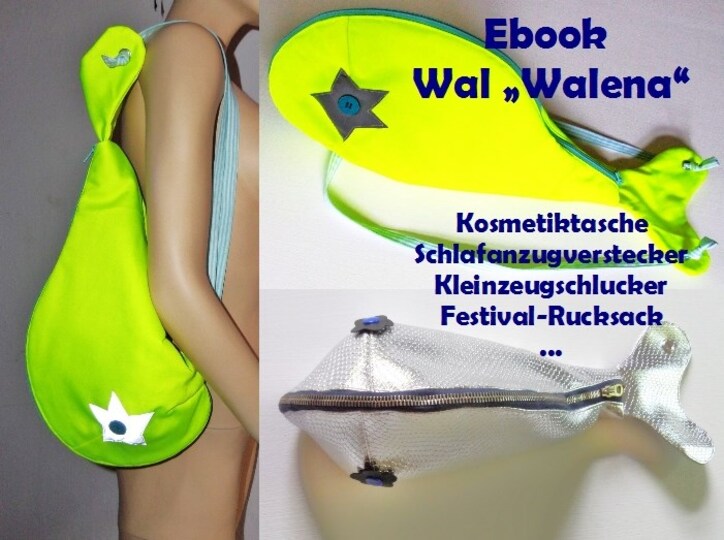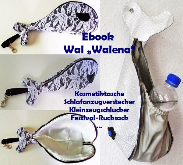 Ob als Kosmetiktasche, Schlafanzugverstecker, Kleinzeugschlucker, Kuschelwal oder Festival - Rucksack, mit oder ohne Rausfallschutz : Es gibt unendliche Möglichkeiten, den niedlichen Wal zu gestalten und zum Einsatz zu bringen.