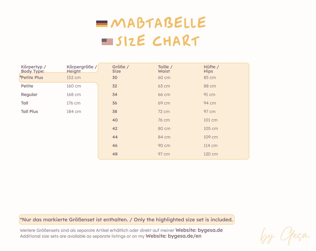 Hinweis: Du kaufst hier das Schnittmuster für den Körpertyp Petite Plus. Jeder Körpertyp wird separat angeboten.