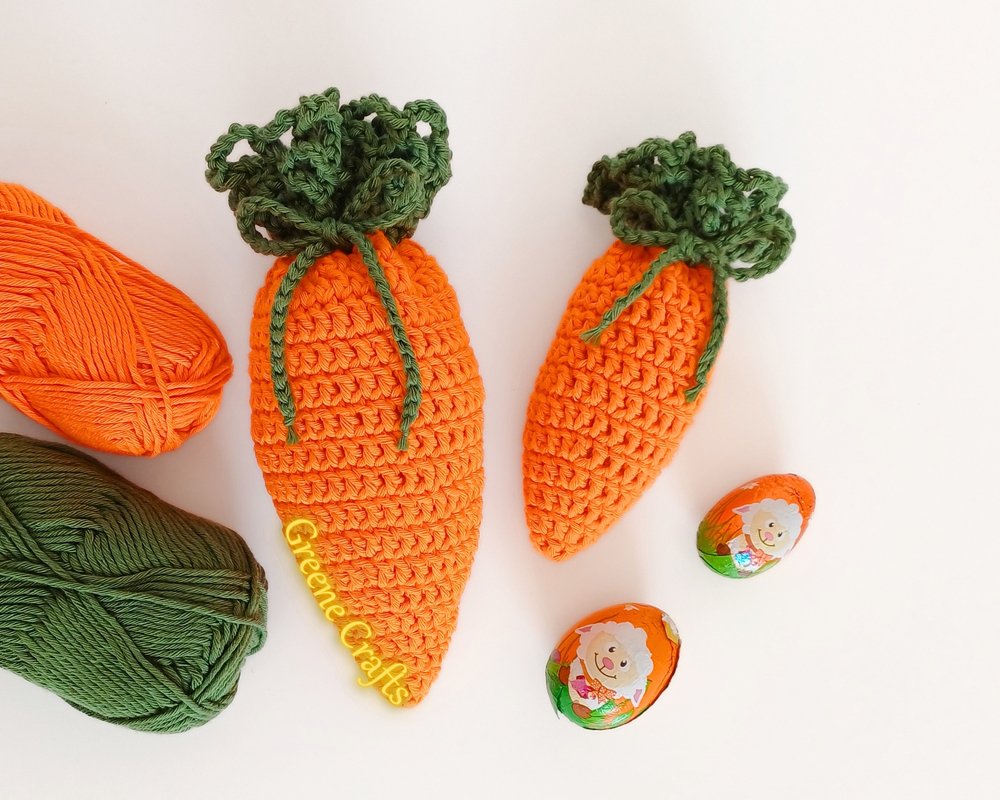 Suchst du ein schnelles und einfaches Häkelprojekt für Ostern? Diese anfängerfreundliche Häkelanleitung zeigt dir Schritt für Schritt, wie du niedliche Karotten-Geschenkbeutel in zwei Größen häkeln kannst.