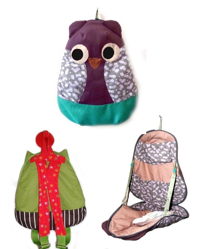 Die Eule als Rucksack: auch hier gibt es nach Belieben Innenfächer. Die Träger sind ergonomisch geformt und durch die Steckschließen kann sich das Kind schnell wieder vom Rucksack befreien.