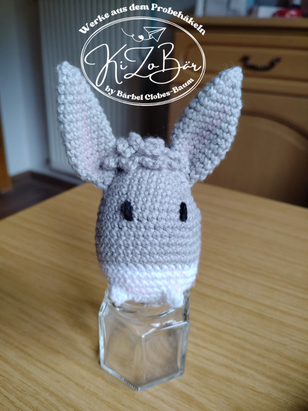 Bedenke bitte, dass jeder etwas anders häkelt und sich somit die Größe etwas verändern kann, damit Du aber trotzdem Freude an der Anleitung hast nimm bitte eine 3er Nadel, wenn Du sehr fest häkelst oder eine 2-2,5er, wenn Du eher locker häkelst, dann sollte das Styroporei in die Hülle passen, alternativ kannst Du es mit Füllwatte ausstopfen.