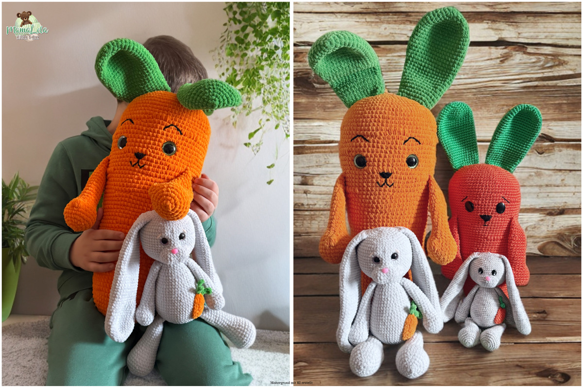 Mr. Möhre und sein Hasi sind das Osterdesign 2026. Wenn ihr die Möhre aus kuschligem Chenillegarn fertigt bekommt sie eine stattliche Größe und eignet sich perfekt als Kuschelkissen oder Nackenrolle. Mr. Möhre bringt seinen Hasi mit, der perfekt in kleine Hände passt und zusätzlich zum Kuscheln einlädt. Ein Duo das in keinem Zuhause fehlen sollte.