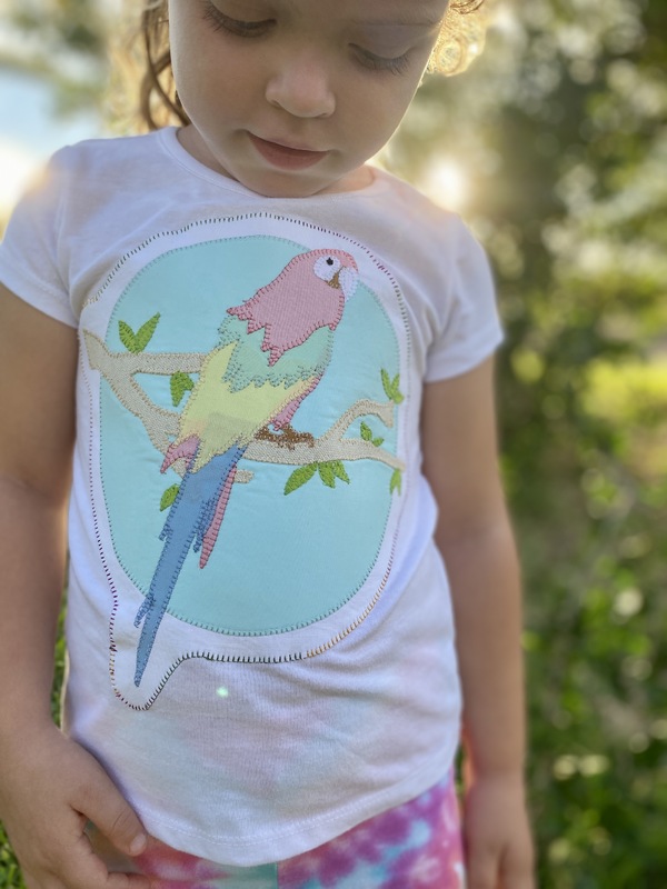 Die Applikation Artemis ist ein detailverliebtes Papageienmotiv, das sich perfekt für kleine und große Lieblingsstücke eignet.