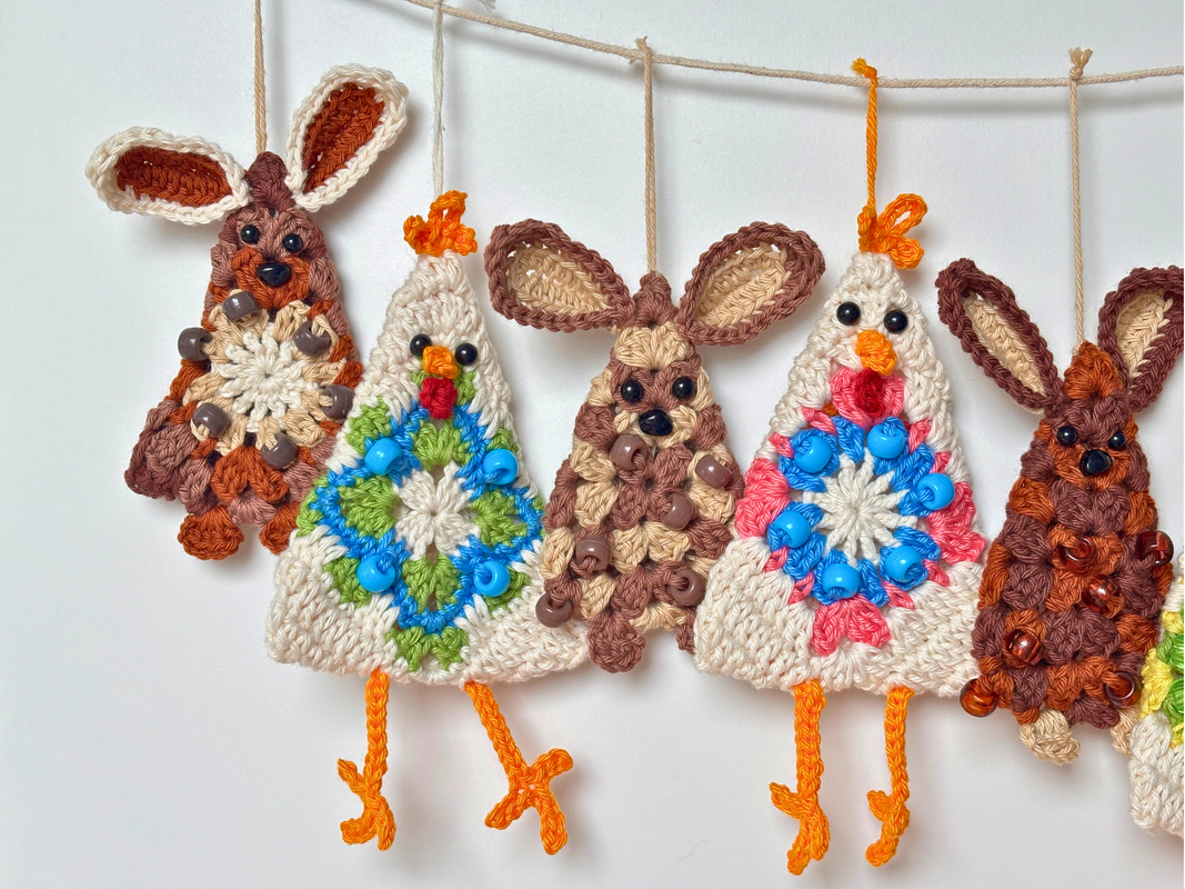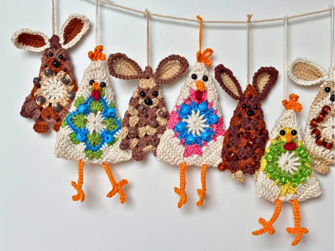 Mit dieser detaillierten, anfängerfreundlichen Häkelanleitung als sofortiger PDF-Download zauberst du im Handumdrehen eine zuckersüße Ostergirlande oder bezaubernde Osterstrauß-Anhänger. Gestalte deine ganz persönliche Osterdeko mit diesem vielseitigen Häkelmuster, das sowohl niedliche gehäkelte Hühner als auch drollige Häkelhasen auf Basis eines modernen Grannysquare-Designs kombiniert. Perfekt, um deinem Zuhause eine Prise handgemachten Charme und Frühlingsgefühle zu verleihen.