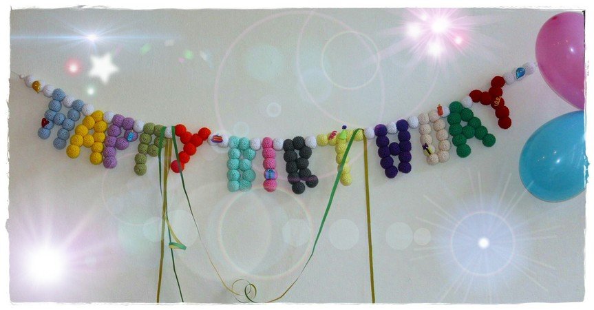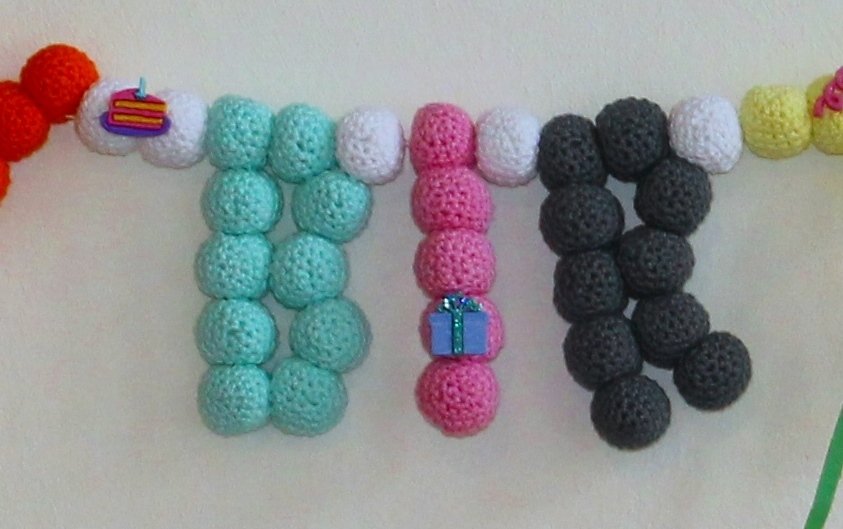Nie wieder zerknitterte HAPPY BIRTHDAY - Girlanden aus Papier aufhängen müssen - das geht mit dieser selbst gehäkelten Girlande.