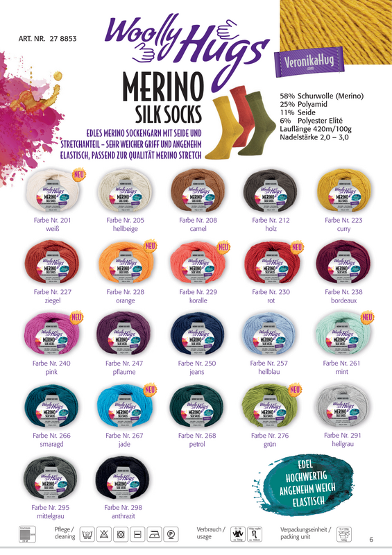 Woolly Hugs MERINO SILK SOCKS (58% Schurwolle, 25% Polyamid, 11% Seide, 6% Polyester Elité, Lauflänge 400 m/100 g)