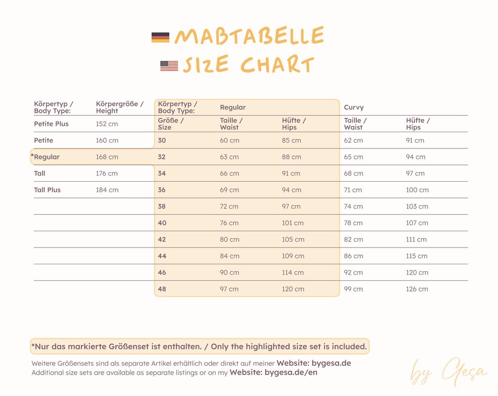 Hinweis: Du kaufst hier das Schnittmuster für den Körpertyp Regular. Jeder Körpertyp wird separat angeboten.
