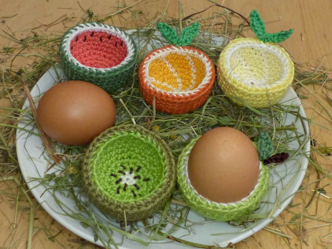 Ein Eierbecher ist sowohl praktisch als auch dekorativ. Nicht nur an den Osterfeiertagen, auch an jedem anderen Tag kannst du dein Frühstücksei in einem selbst gehäkelten, fruchtigen Eierbecher auf den Tisch stellen. Häkel für jedes Familienmitglied einen Eierbecher in der Lieblingssorte oder stimme die Becher harmonisch auf deine Tischdekoration ab. Die 5 Modelle Zitrone, Orange, Apfel, Kiwi und Melone werden ausführlich beschrieben, viele Fotos helfen dabei, den Herstellungsprozess zu veranschaulichen.