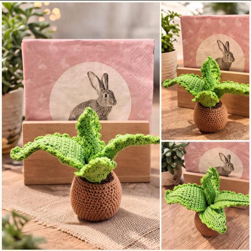 Die Pflanze wird in einem kleinen Topf gehäkelt und eignet sich perfekt als dekorativer Hingucker, der ganz ohne Pflege auskommt und dauerhaft Freude schenkt.