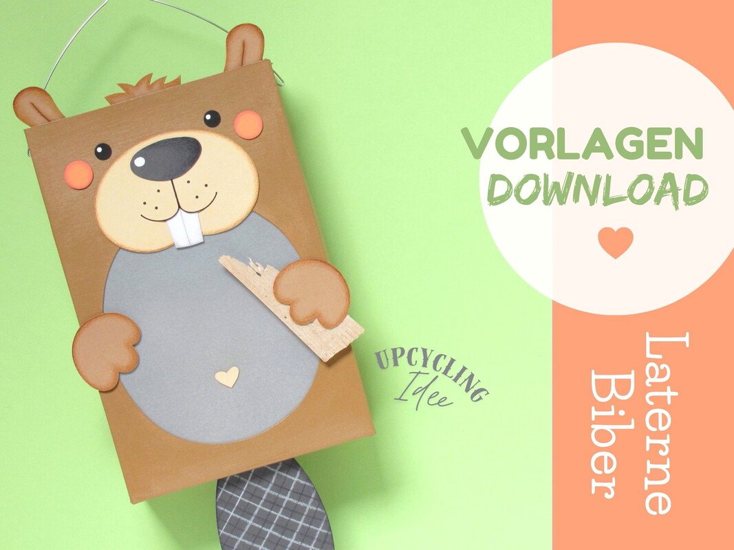 Tolle Upcycling-Idee für deine Müslischachtel: Martinslaterne Biber für St. Martin, Laternenfeste und Laternenumzüge. Im Sofort-Download mit allen Vorlagen sowie ausführlicher Anleitung in deutscher Sprache findest du alles zum Herstellen der süssen Biberlaterne. Eine ideale Laterne für kleinere Kinder.