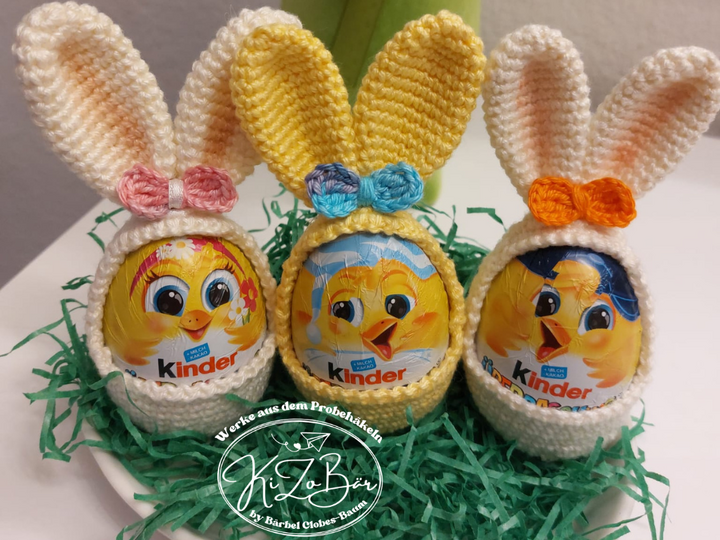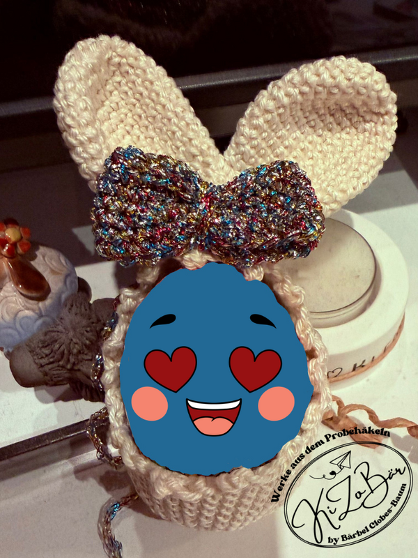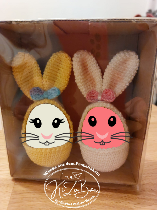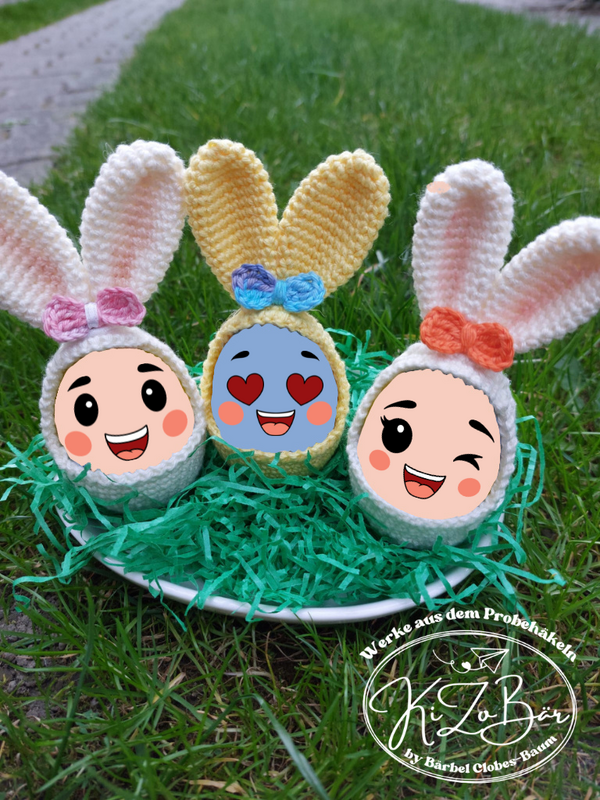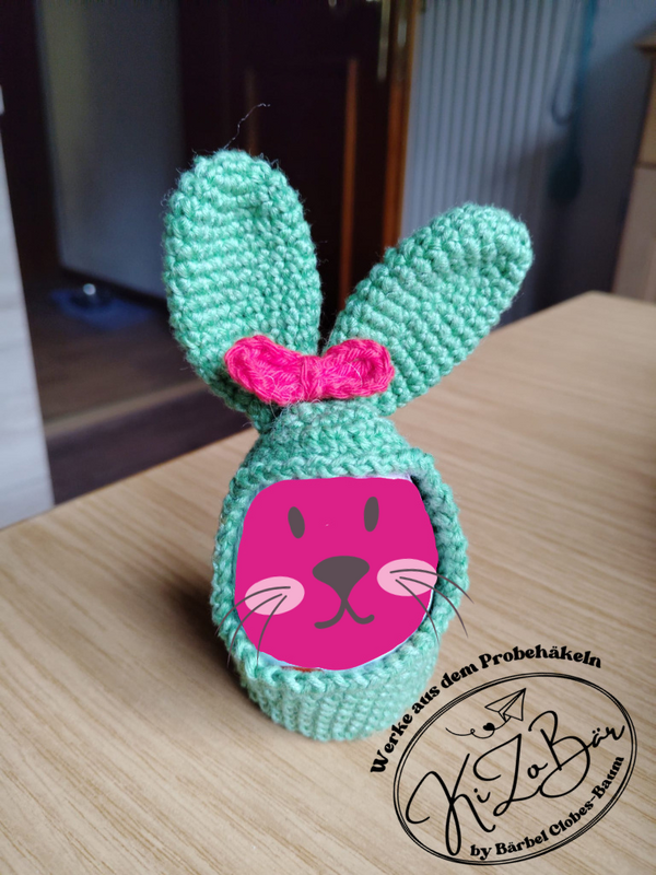 Dies ist kein fertiges Produkt, sondern eine Anleitung zum Häkeln von einer niedlichen Eierhülle in Häschenform, perfekt für Oster- oder Schoko-Eier.