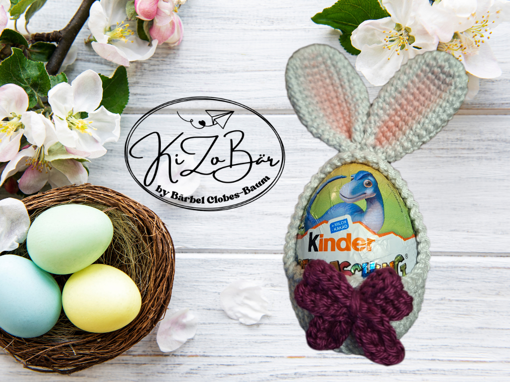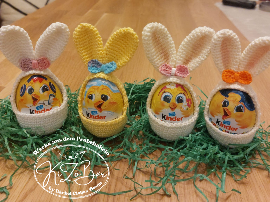 Dies ist kein fertiges Produkt, sondern eine Anleitung zum Häkeln von einer niedlichen Eierhülle in Häschenform, perfekt für Oster- oder Ü-Eier.