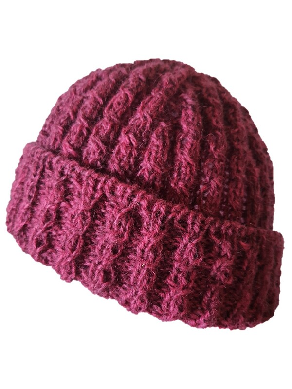 Die Mütze ist durch das Zopfmuster sehr dehnbar und für eine normalen Kopfumfang passend.