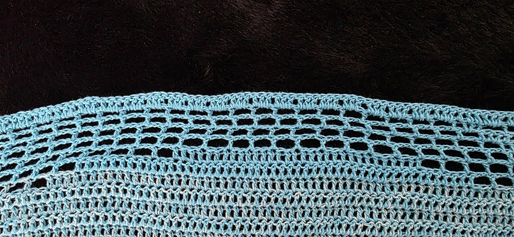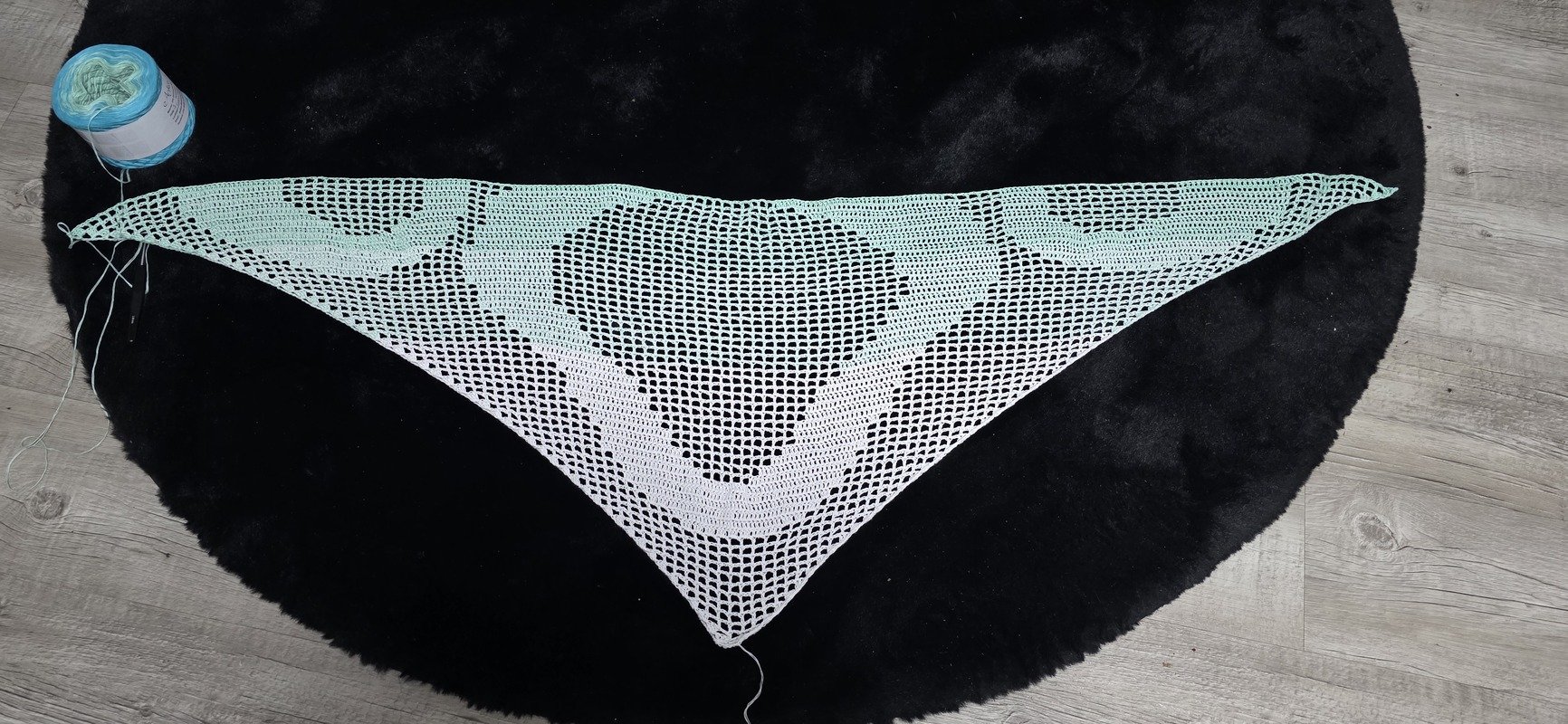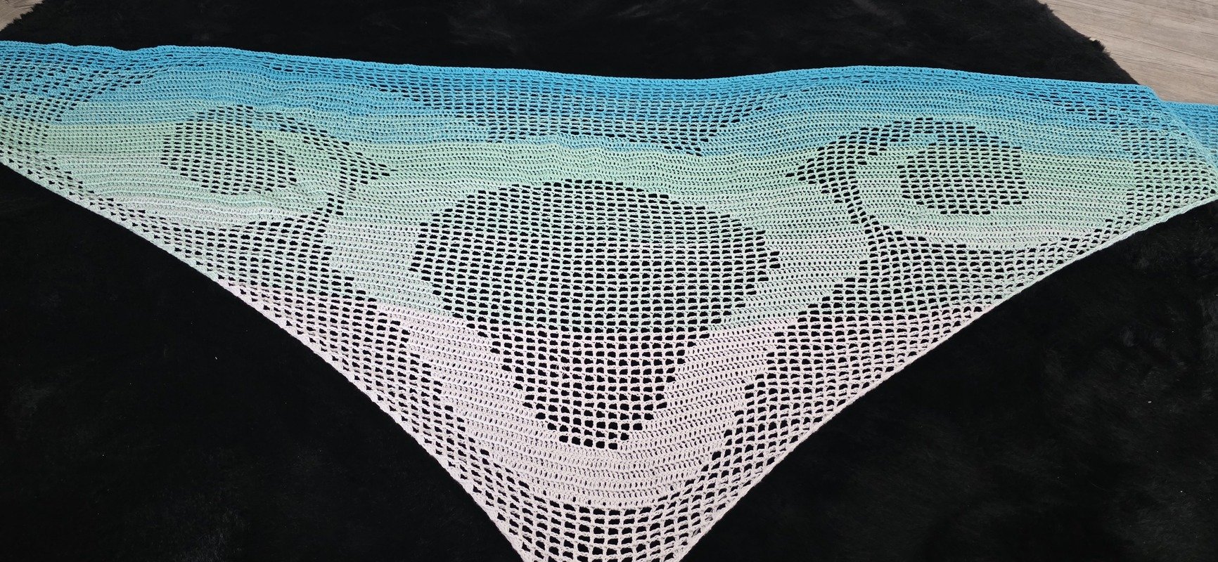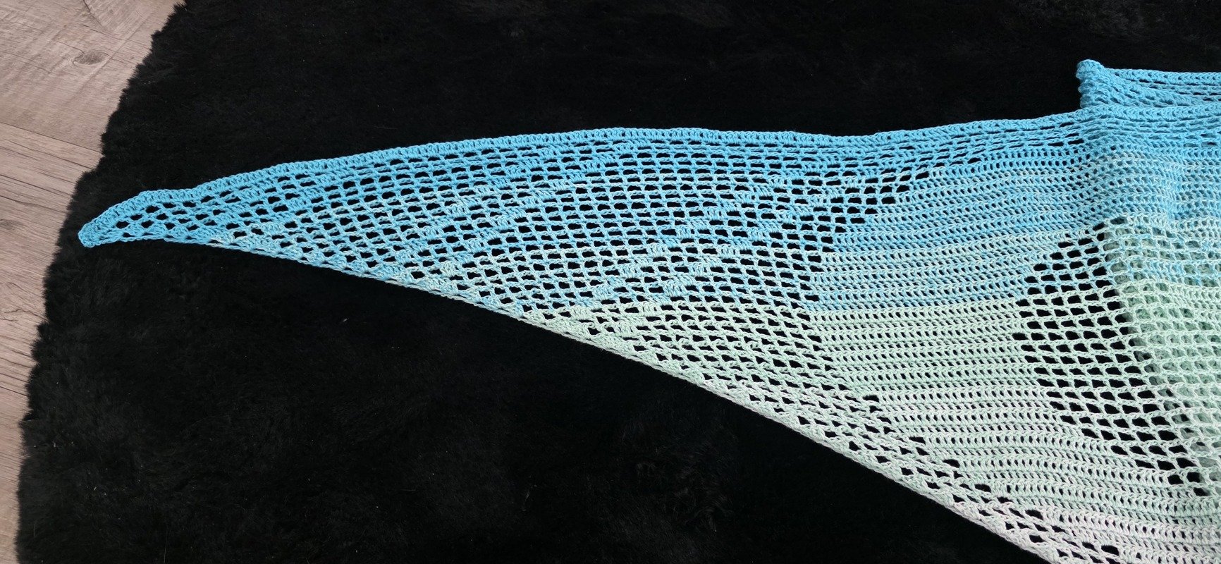 Das fertige Tuch hat bei mir eine Größe von circa 230cm x 70cm. Bei jedem kann es natürlich anders ausfallen, durch andere Häkelweise.