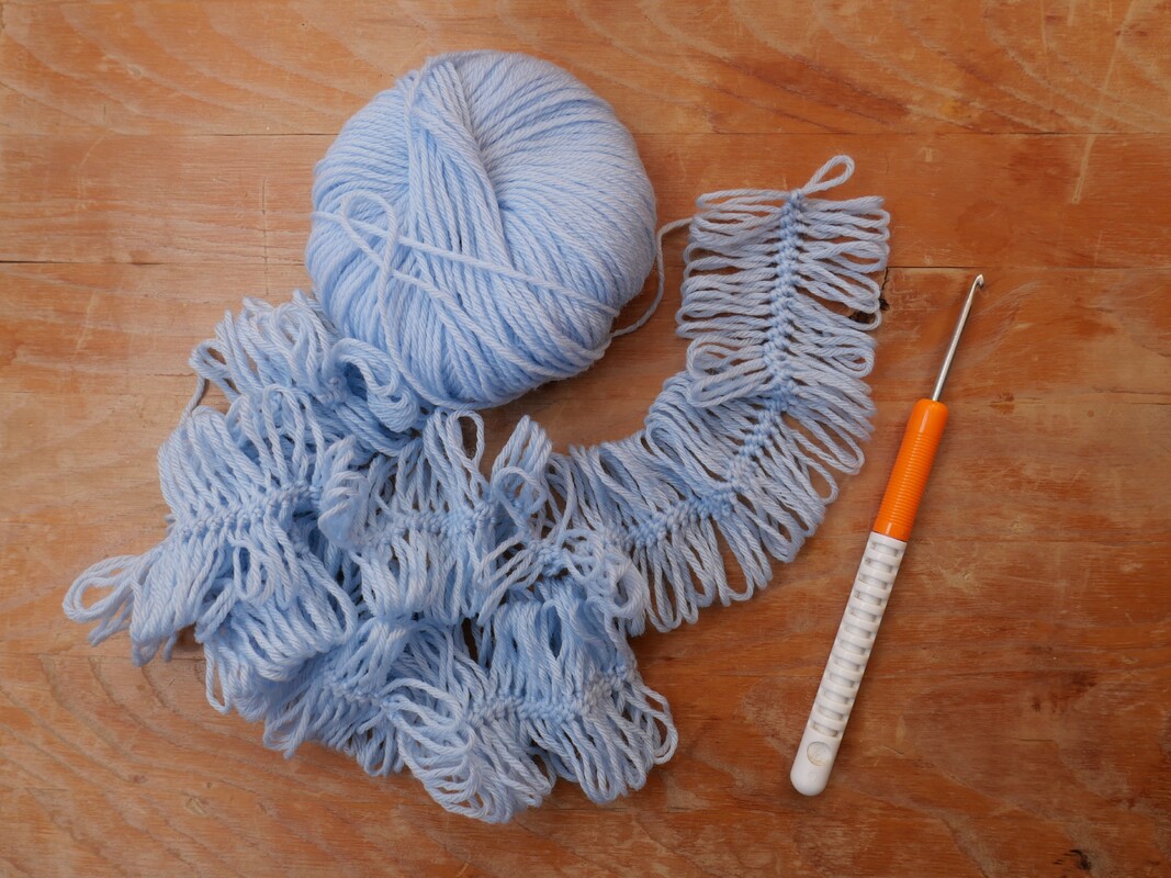 Der gabelgehäkelte Schal kann in jeder beliebigen Länge gehäkelt werden.