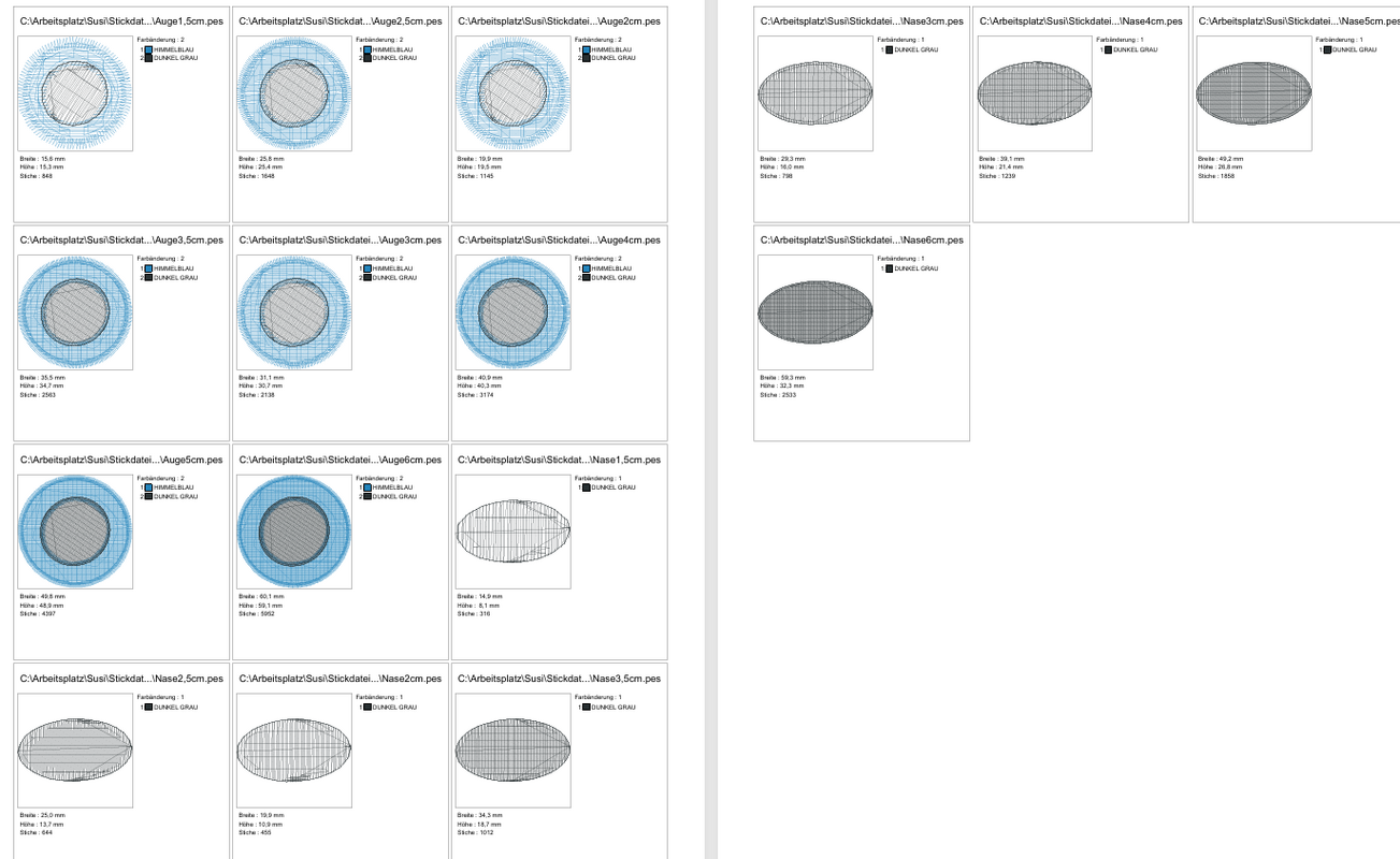 Stickdateiserie Augen und Nasen voll gestickt