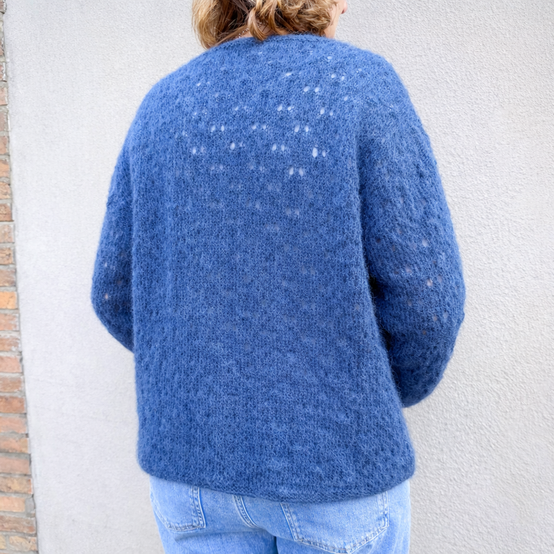 Diese Strickanleitung zeigt dir Schritt für Schritt, wie du die Lochmuster Jacke Eileen als leichte Sommerjacke stricken kannst.