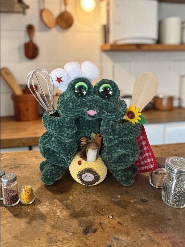 Dieser niedliche Frosch ist viel mehr als nur ein Amigurumi. Er vereint praktischen Nutzen mit liebevoller Gestaltung und wird so zu einem echten Blickfang im Alltag. Ob auf dem Schreibtisch als Stifthalter, in der Küche als Eyecatcher oder als dekoratives Element an Tür oder Wand – Sir Croak-a-lot bringt Charme und Ordnung in jeden Bereich. Auch als Geschenk ist dieser kleine Frosch etwas ganz Besonderes. Er passt perfekt zum Einzug in eine neue Wohnung, zum Schulbeginn, zum Geburtstag oder als kleine Aufmerksamkeit zwischendurch und sorgt garantiert für Freude.