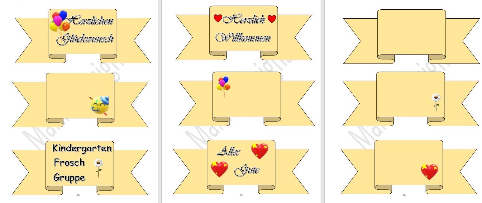 Die abgebildeten Schilder sind in der Anleitung enthalten und können bei Bedarf ausgedruckt werden.
