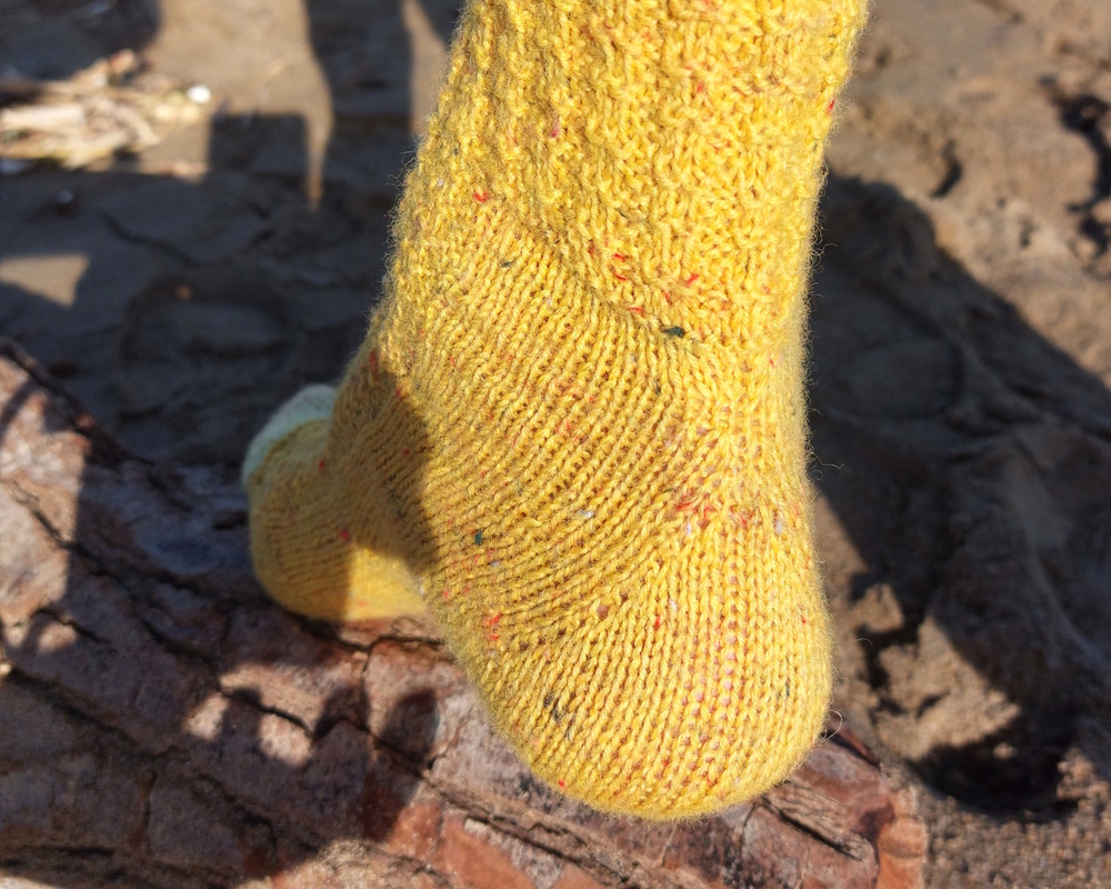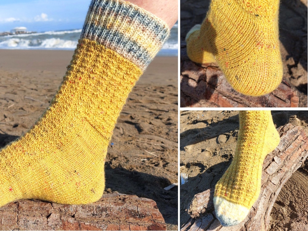 Die April-Socke des Sockenjahr 2026 ist ein echter Hingucker: Pelikular kombiniert ein elegantes Bündchen im Halbpatent mit einem feinen Strukturmuster – zweifarbig gestrickt für einen modernen, lebendigen Look.