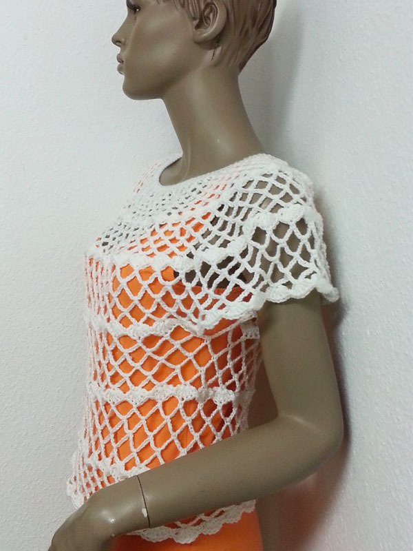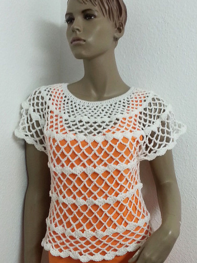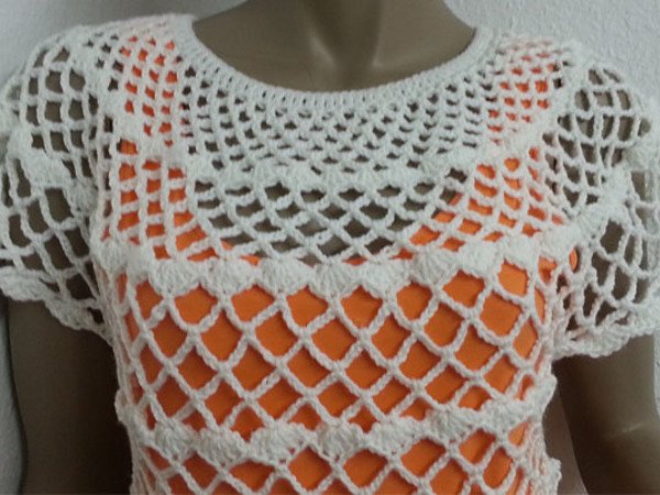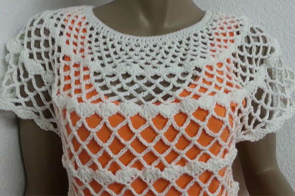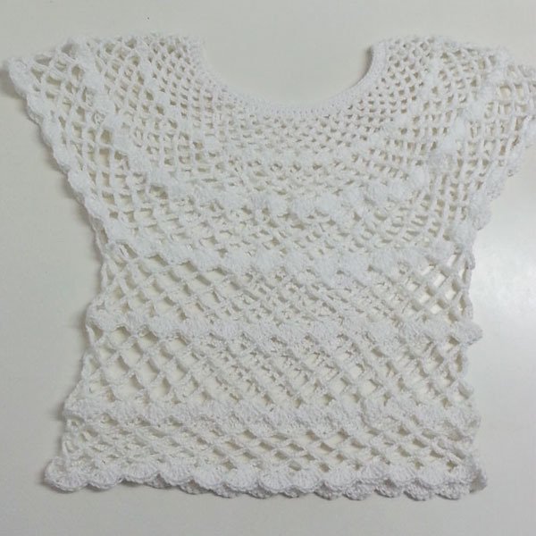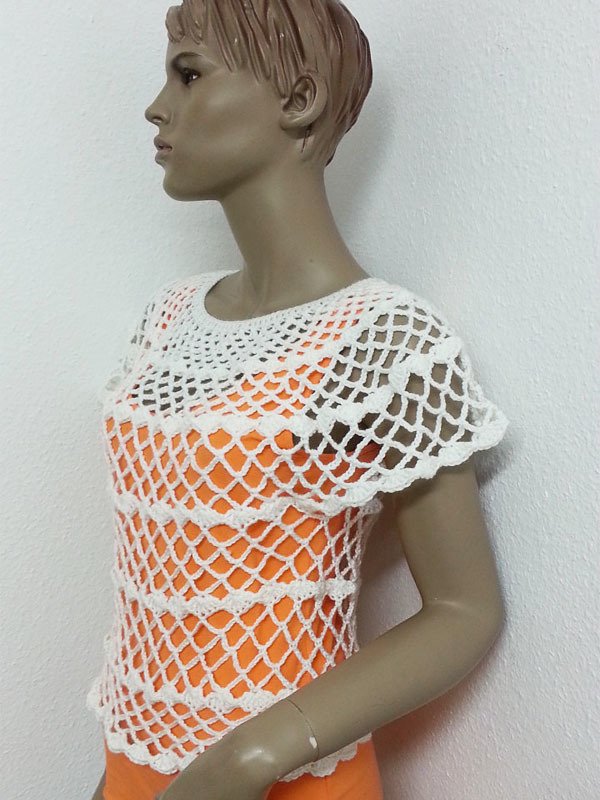Das Shirt wird in Runden von oben nach unten gehäkelt.