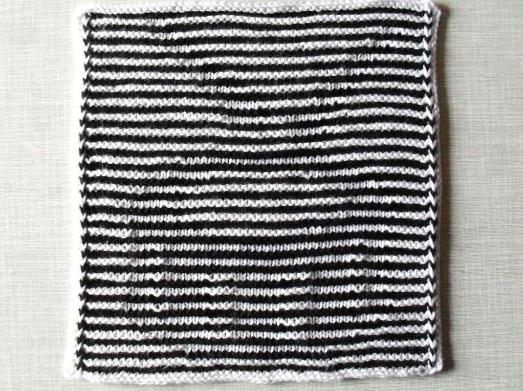 Benötigt wird Baumwollgarn in zwei Farben, gesamt ca. 40 Gramm. Ich habe meine Anleitungen mit Catania, Cotone von Lanagrossa, Limone von Schöller und Stahl, Ibiza von Twister oder Baumwolle von Sostrene greene und von Mayflower gestrickt, je nachdem, wo mir die Farben am besten gefallen haben. Die Nadelstärke ist 2 1/2 oder 3, je nach Material und Strickweise, es muß sehr fest gestrickt werden!