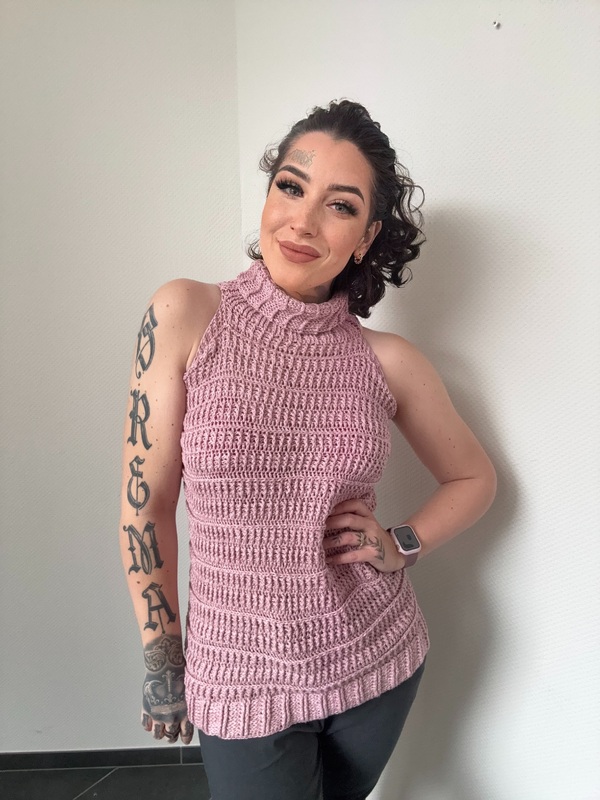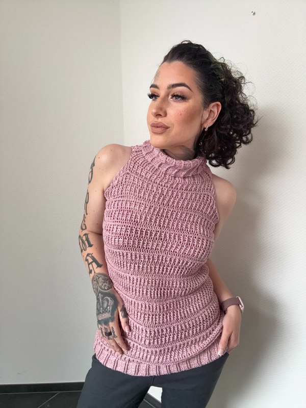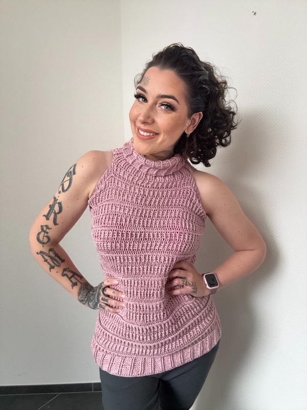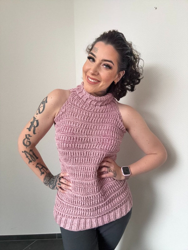 Du kannst den Pullunder auf jede beliebige Körpergröße anpassen. Das abgebildeten Modell hat Konfektionsgröße 38/40. Wenn du Hilfe beim umrechnen brauchst, kannst du dich jederzeit über WhatsApp melden. Die Nummer steht direkt auf der ersten Seite der Anleitung.