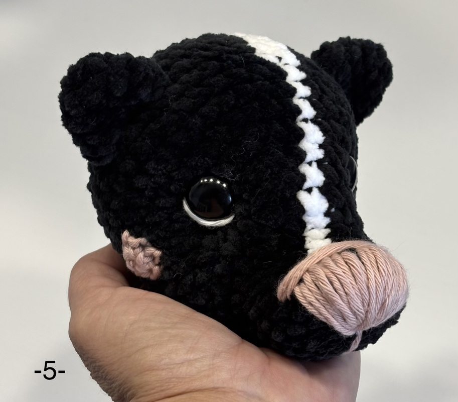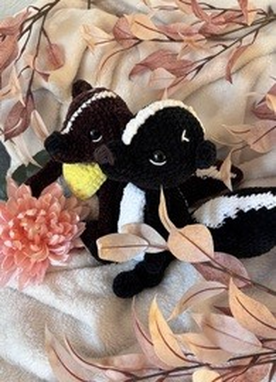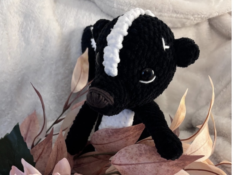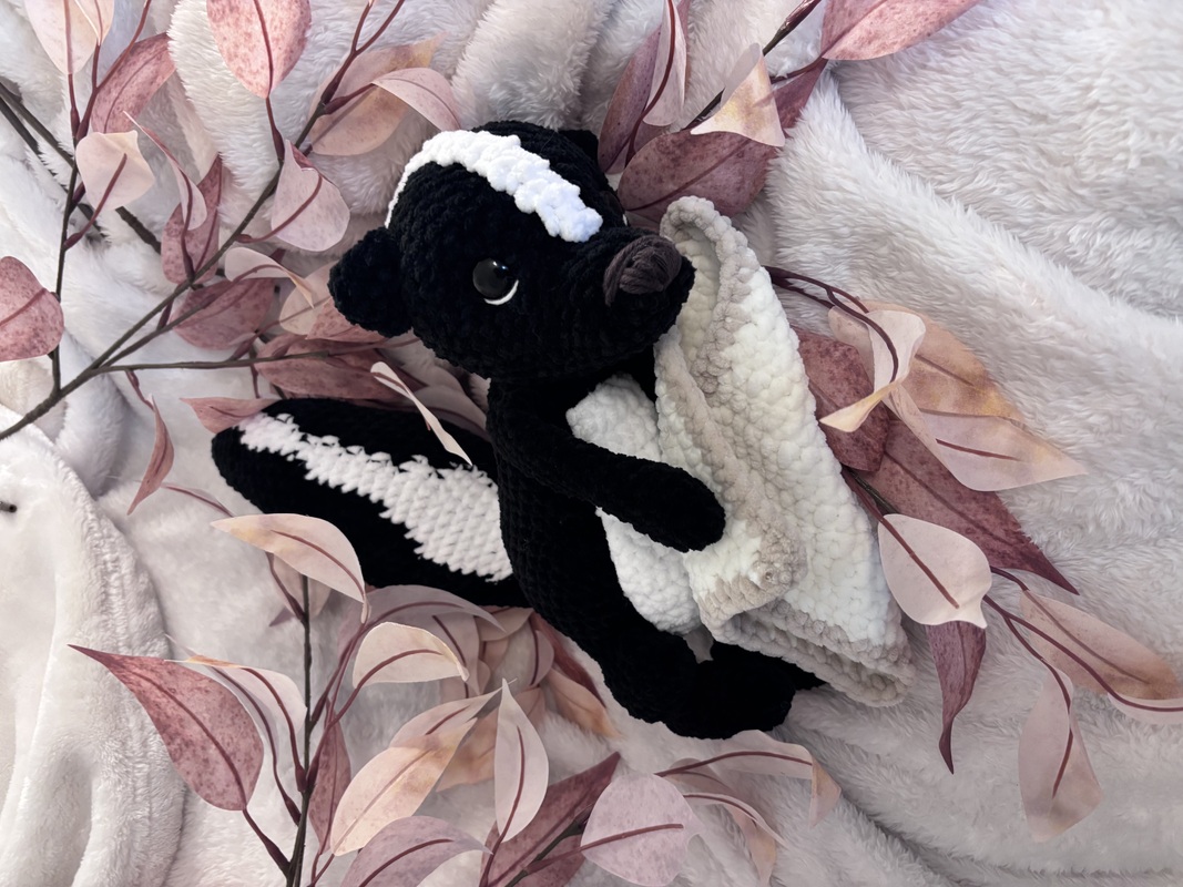 Sammy das Stinktier ist ein besonders flauschiges und niedliches Amigurumi, das mit weicher Chenillewolle gehäkelt wird. Mit seinem süßen Gesicht und dem typischen Stinktierlook ist Sammy ein echter Hingucker, perfekt als Geschenk oder liebevolle Dekoration.