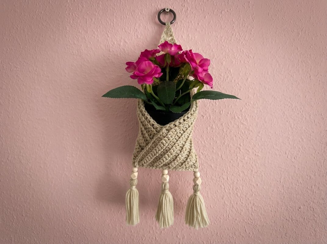 Die Kombination aus strukturierter Häkeloptik, warmem Naturton und verspielten Quasten macht dieses Stück zu einem echten Hingucker – perfekt für Wohnzimmer, Schlafzimmer oder den Flur. Auch im Wohnmobil sorgt diese dekorative Tasche für Ordnung mit Stil.