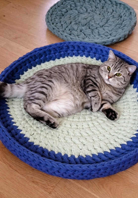 Die Tierbett-Variante findet auf dem Boden oder zum Schutz auf der Couch ihren Platz. Durchmesser und Rand lassen sich einfach anpassen.