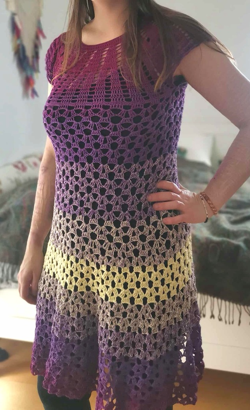 Es wird in einem Stück von oben nach unten gehäkelt und kann perfekt an jede Körperform und Größe angepasst werden.
