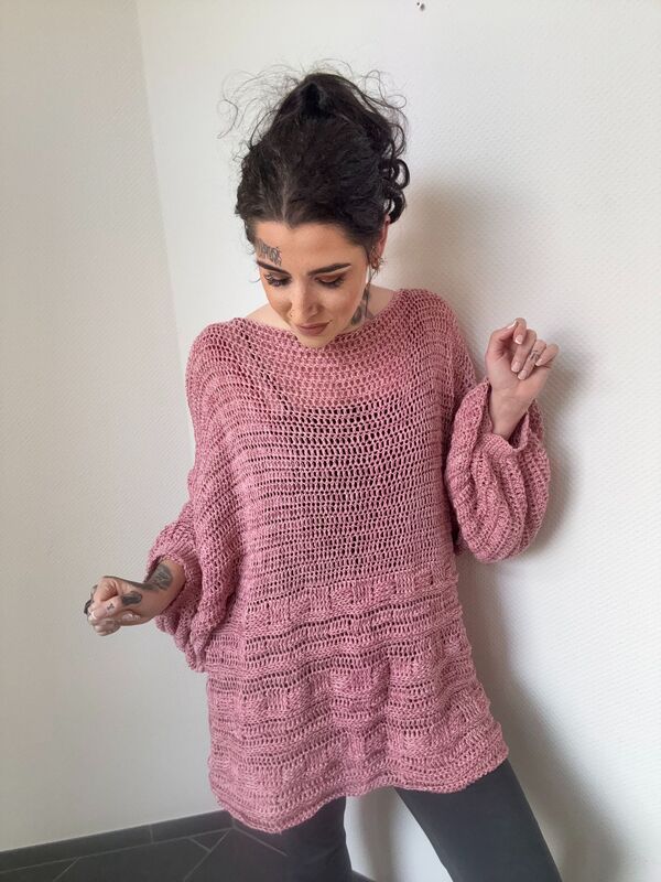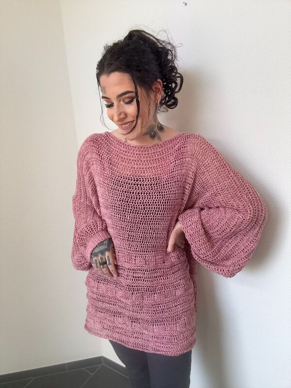 Der Pulli wird komplett in einem Stück gehäkelt – kein Zusammennähen, kein Ärmel-Gefummel, kein Unterbrechen deines Häkelrhythmus. Du kannst dich ganz auf dein Projekt einlassen und Masche für Masche genießen.