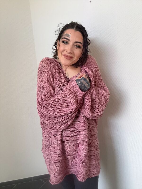 Da der Pulli in einem Stück entsteht, bekommst du schnell ein Gefühl für den Aufbau – und genau das macht dieses Projekt so angenehm. Du kannst dich einfach treiben lassen und deinem Häkelstück beim Wachsen zusehen.