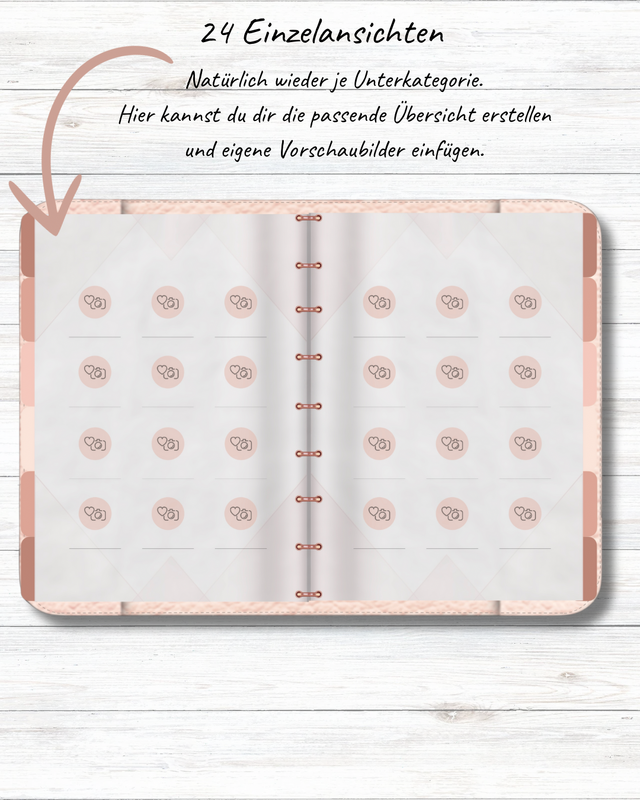 12 Hauptkategorien, davon jeweils 12 Unterkategorien in welchen jeweils 24 Einzelansichten zur Verfügung stehen.