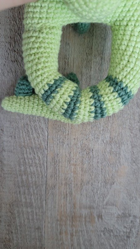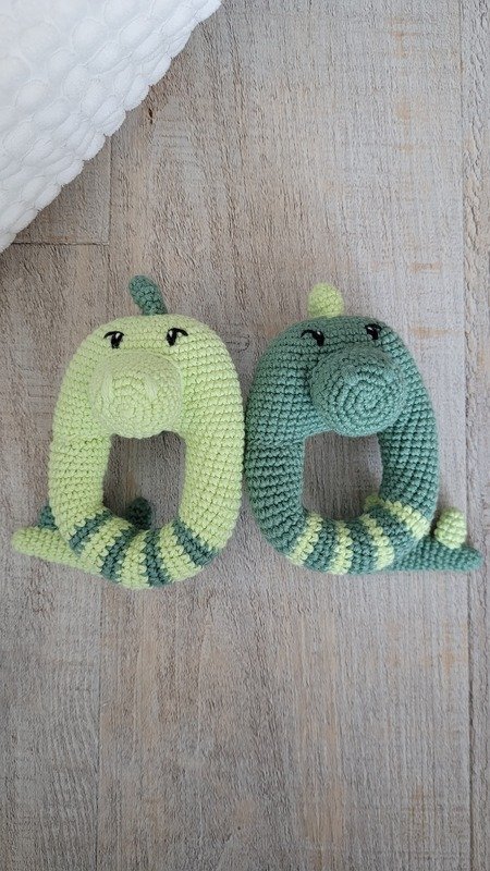 Mit dieser PDF Häkelanleitung kannst du eine niedliche Dinosaurier-Rassel für Babys selbst häkeln. Das liebevoll gestaltete Babyspielzeug verbindet Greifling, Greifring, Beißring und Rassel in einem weichen, babyfreundlichen Design – und das als Rassel ohne Holzring.