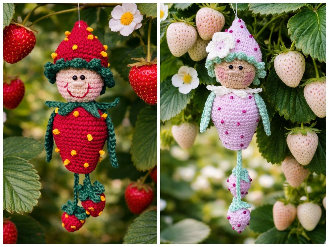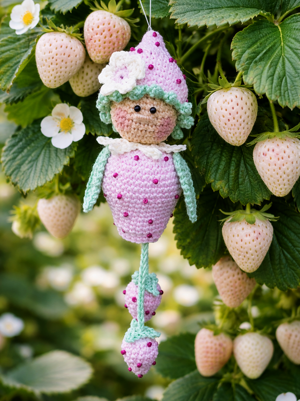 Häkelanleitung Fräulein Erdbeere mit Baumelbeinen
