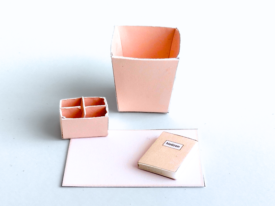 Mit diesem Bastelbogen kannst du kleine Büro-Accessoires im Maßstab 1:12 selbst herstellen.