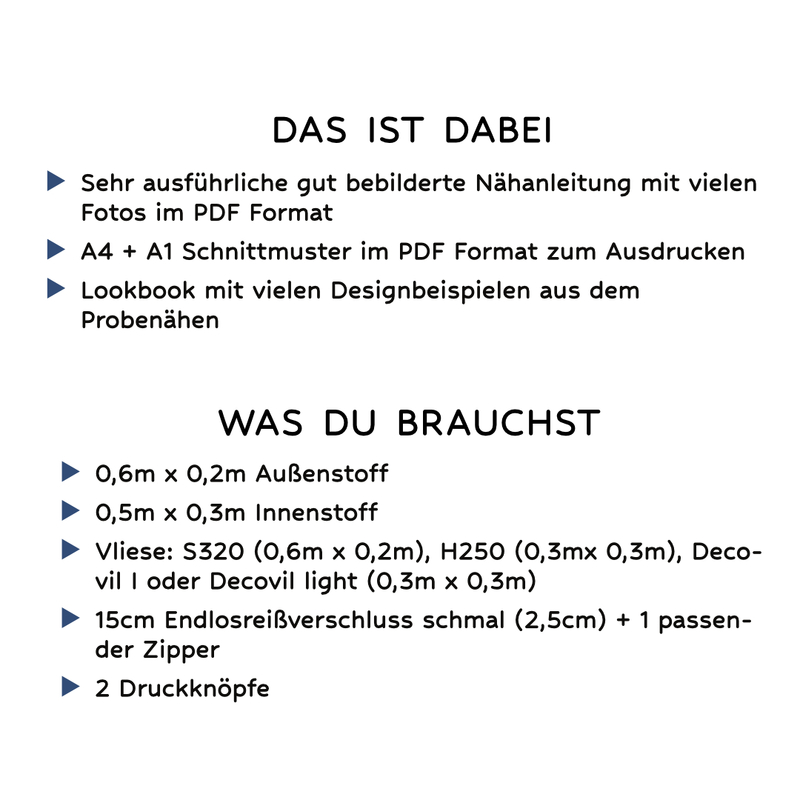 Für Fehler in der Anleitung oder im Schnittmuster wird keine Haftung übernommen.