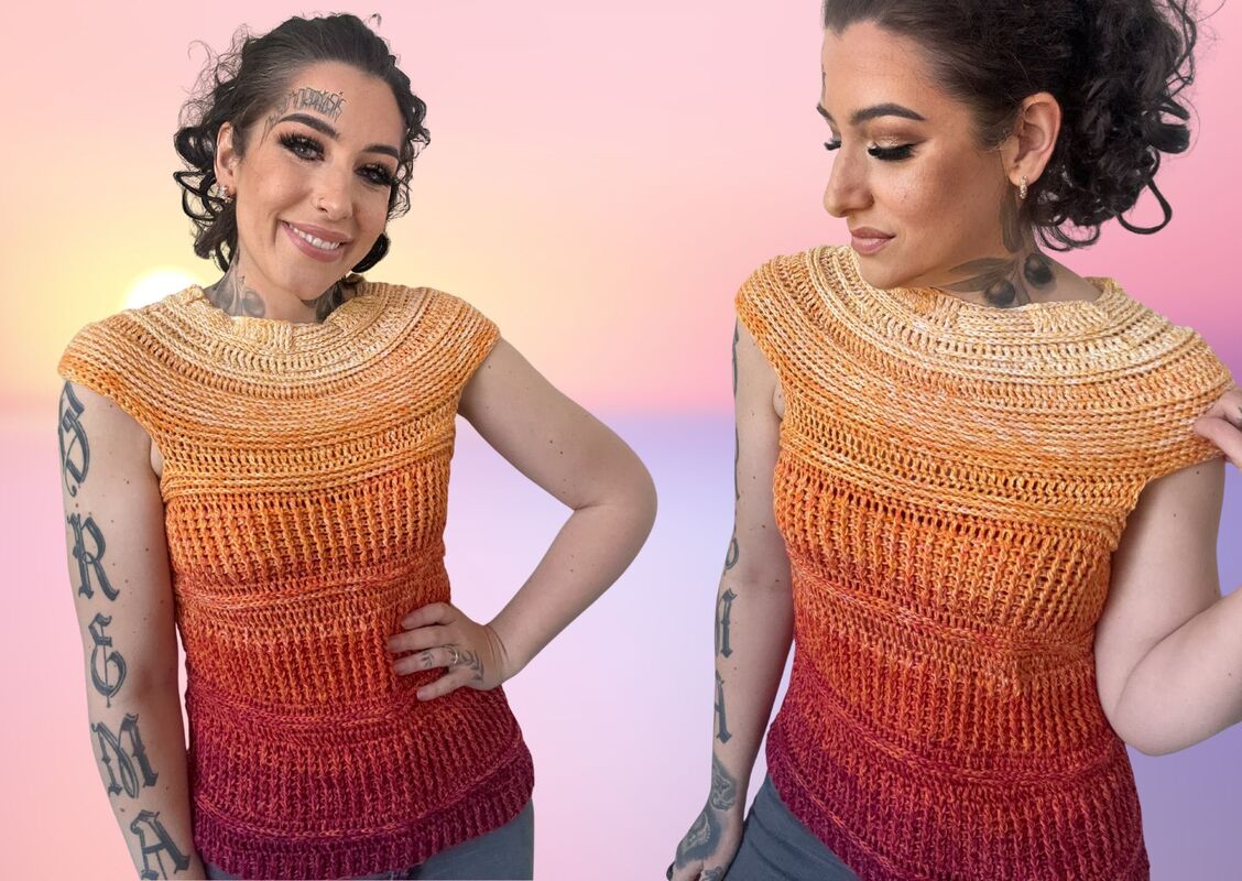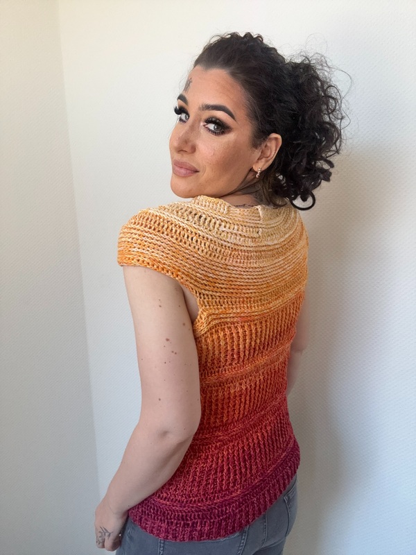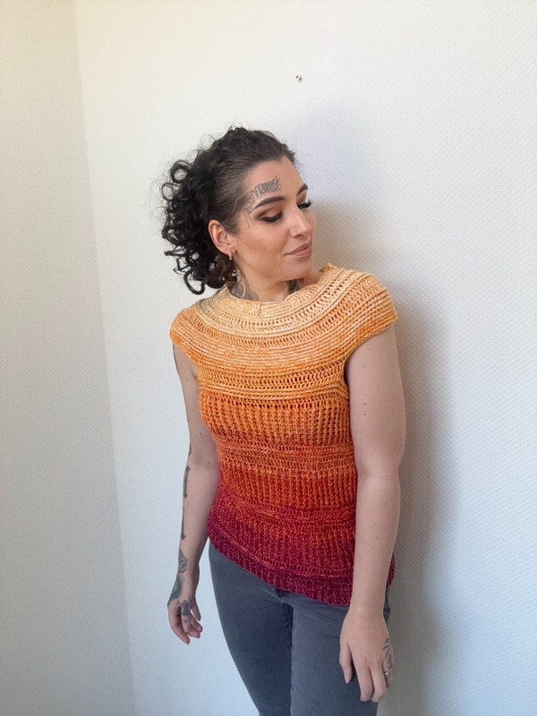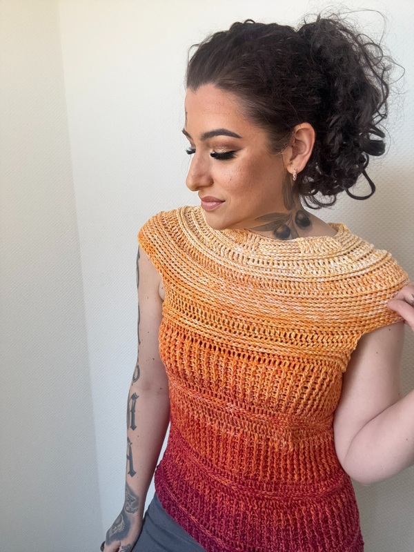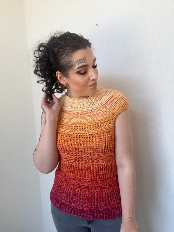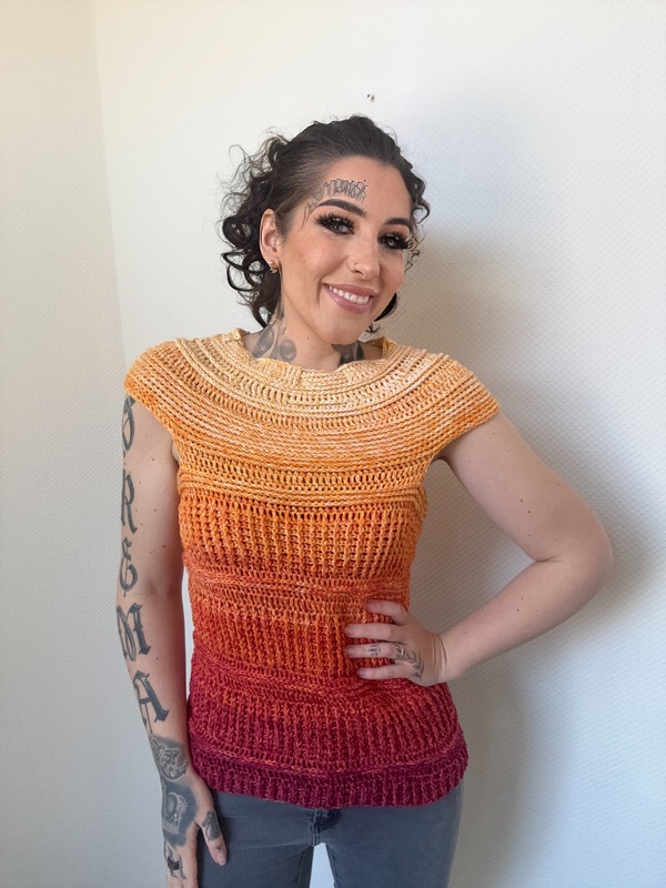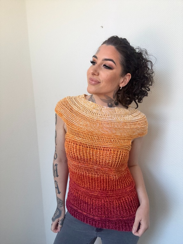 Stell dir vor: warme Sonnenstrahlen auf der Haut, ein leichter Wind, der durch dein selbstgehäkeltes Shirt weht – und Farben, die aussehen wie ein Sonnenuntergang am Meer. Genau dieses Gefühl bringt dir Sunset on Fire direkt auf die Nadel.
