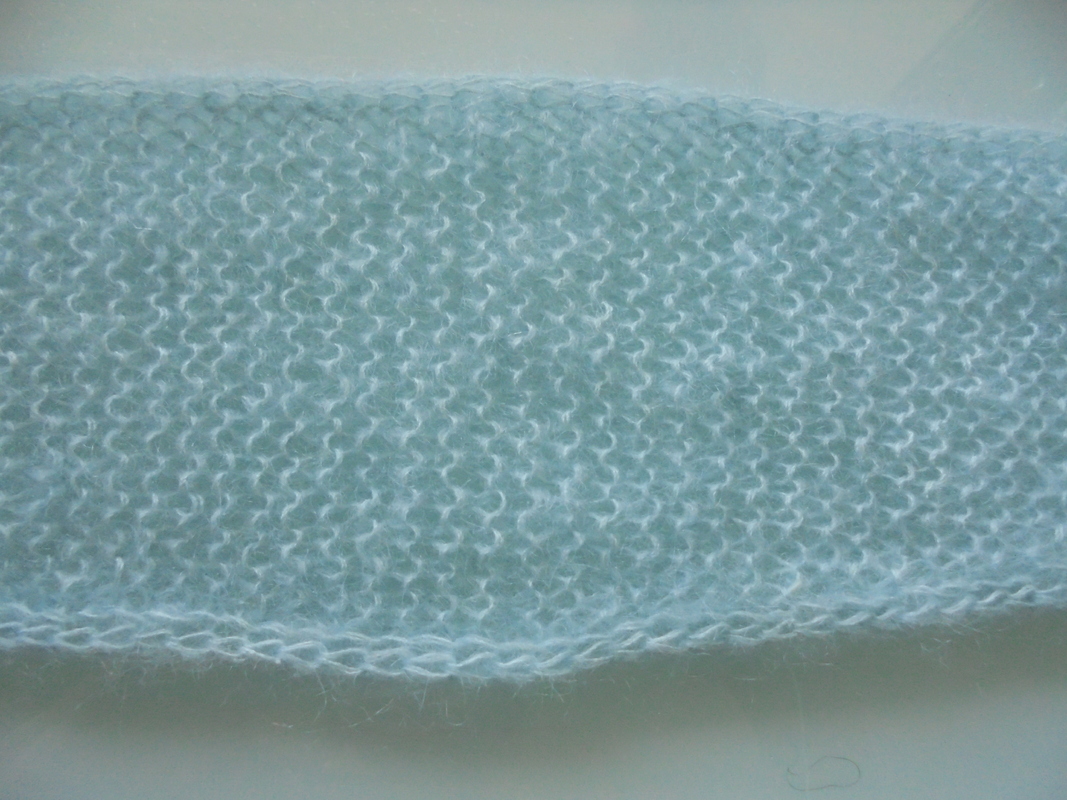 Das Tuch wird durchgehend mit doppeltem Faden gestrickt.