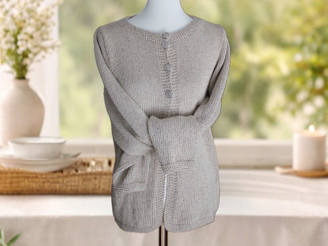 Diese Strickjacke ist der perfekte Begleiter für jede Jahreszeit. Dank des Baumwoll-Leinen-Gemischs ist die Jacke leicht, formstabil und angenehm zu tragen – perfekt über Kleider, Shirts oder Blusen. Ein vielseitiges Basic, das in keiner Garderobe fehlen sollte.