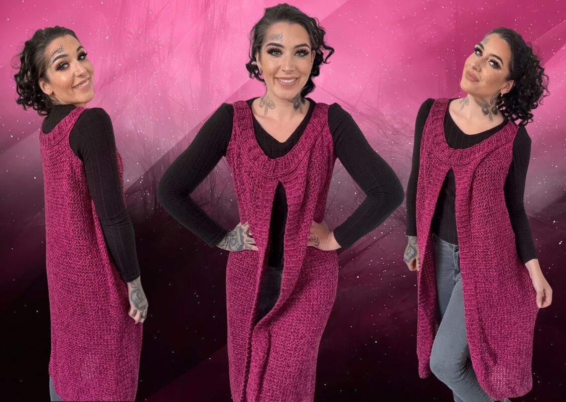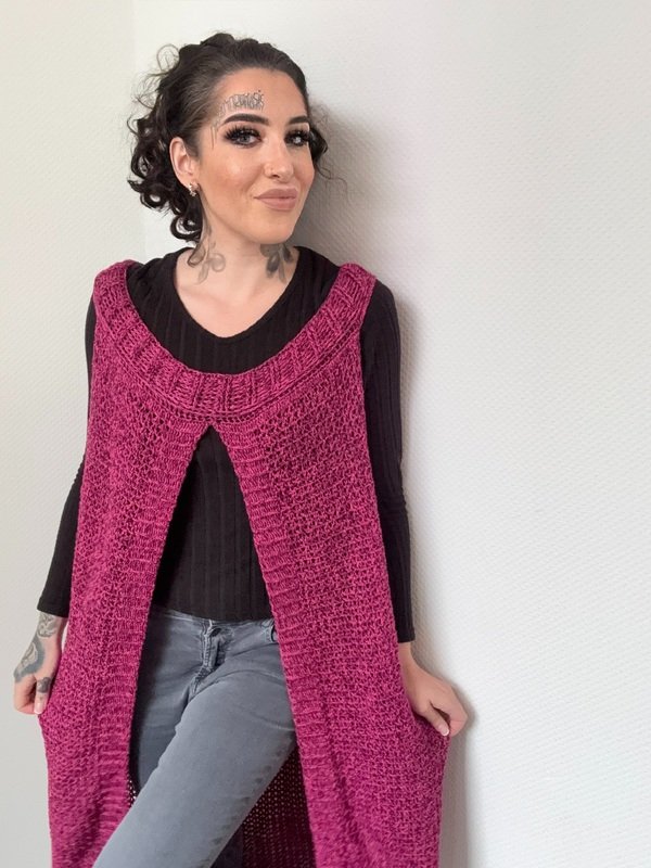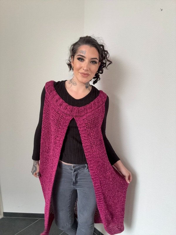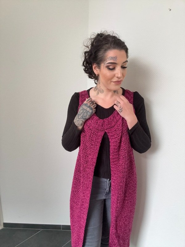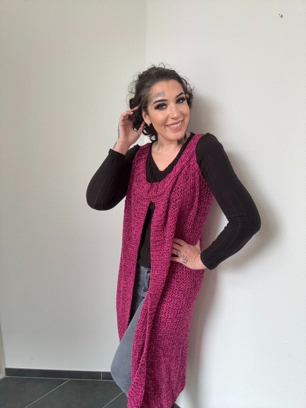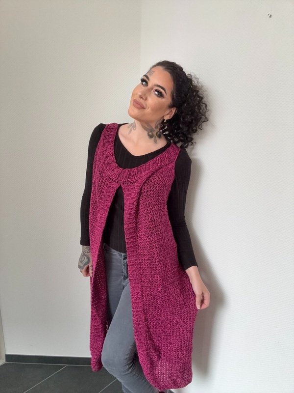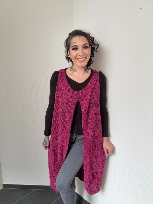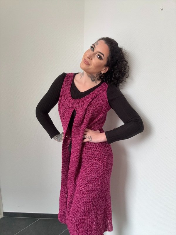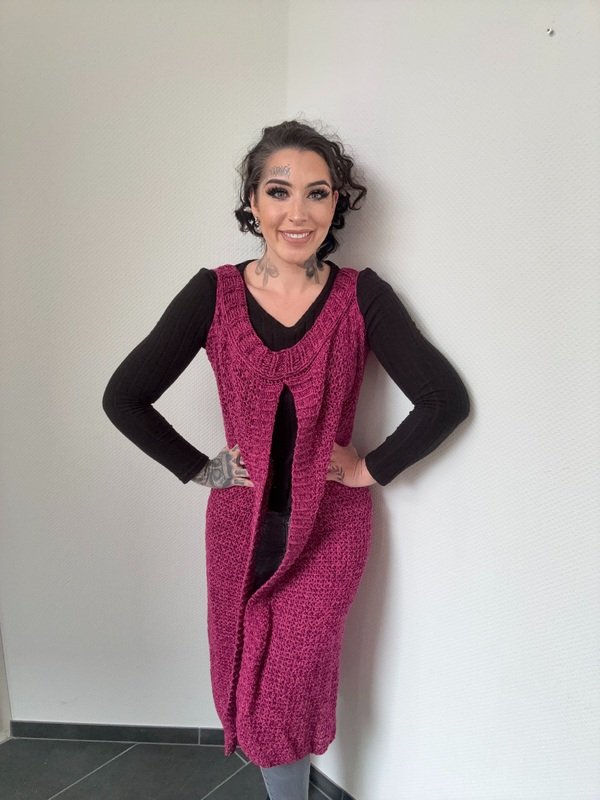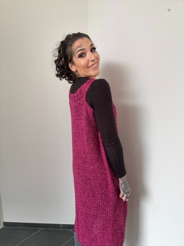 Gehäkelt wird sie ganz entspannt in einem Stück von oben nach unten – ohne kompliziertes Zusammennähen. So entsteht ein wunderschöner, fließender Fall, der jeder Bewegung folgt und dich einfach strahlen lässt.