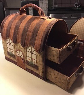Ebook zum Herstellen eines genähten Koffers mit Schubladen und Trägergurt.