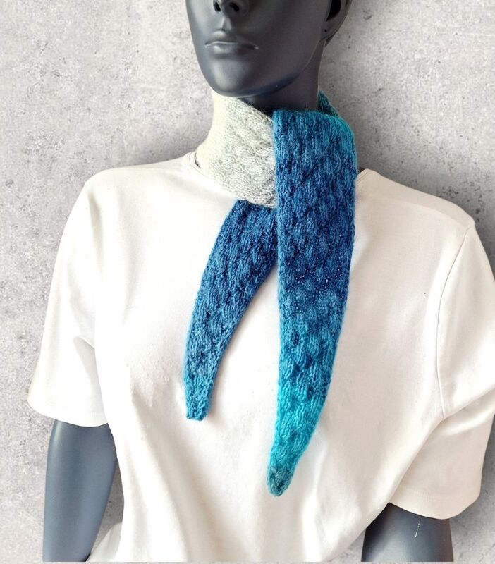 Dann ist dieser Mini-Schal geradezu ideal. Für dieses Halstuch werden lediglich ca. 30 - 35 g Wolle mit einer Lauflänge von ca. 550 m / 100 g benötigt. Hier wurde Mirabella von Gründl-Wolle verwendet. Alternativwolle: Angora Gold Batik von Alize oder jede andere Wolle, die annähernd einer Maschenprobe von 24 Maschen x 32 Reihen ergibt.
