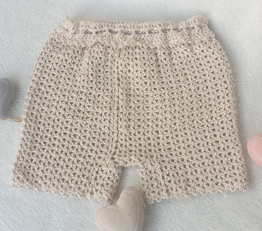 • Wandelbare Länge: Die Anleitung führt dich durch das dekorative V-Stitch-Muster. Du entscheidest selbst, ob du nach dem Schritt direkt aufhörst (kurze Windel-Shorts) oder das Muster in Runden fortsetzt, bis eine lange Hose entstanden ist.