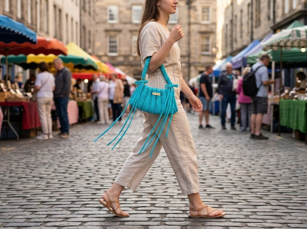 Diese Tasche vereint minimalistisches Design mit einem angesagten Chunky Look. Durch das dicke T-Shirt Garn entsteht eine wunderschöne, strukturierte Oberfläche, die sofort ins Auge fällt. Die dekorativen Schleifen an den Seiten geben der Tasche einen verspielten, individuellen Touch – perfekt für Alltag, Shopping oder als Statement-Accessoire.