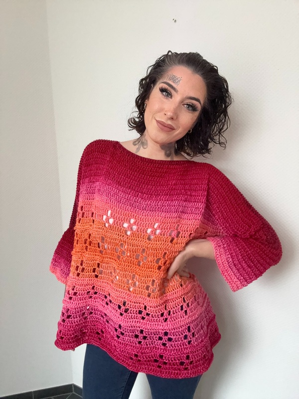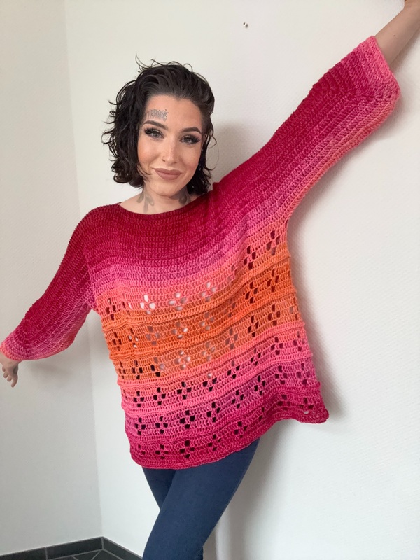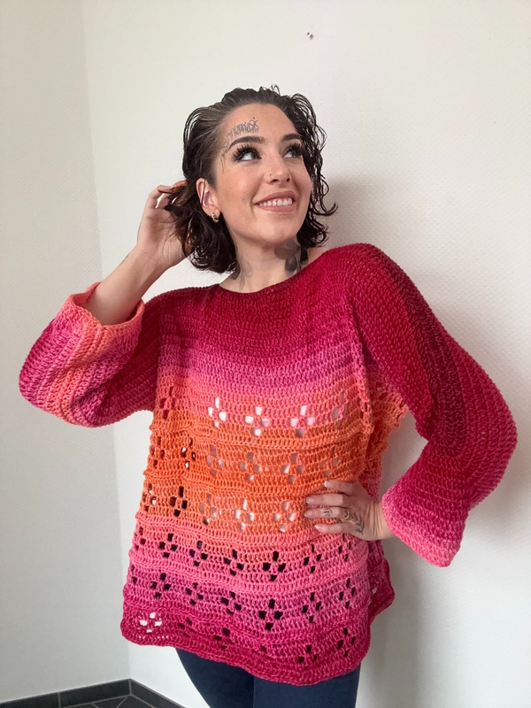 Leicht, lebendig und voller Ausdruck: „GIRL ON FIRE“ ist mehr als nur ein Pullover – es ist ein echtes Statement-Piece für alle, die Farbe lieben und Individualität feiern. Diese brandneue Häkelanleitung begleitet dich Schritt für Schritt zu deinem ganz persönlichen Lieblingsstück.