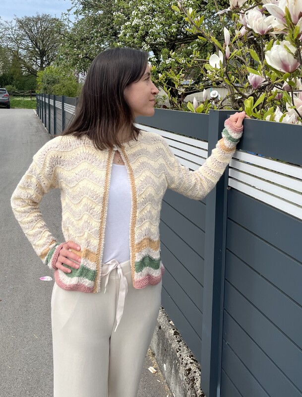 Diese Strickanleitung in 2 Größen S-M/L-XL führt dich Schritt für Schritt zu einer stilvollen, luftigen Sommerjacke im wunderschönen Wellenmuster. Perfekt für kältere Abende, den Urlaub oder als eleganter Begleiter an warmen Tagen.