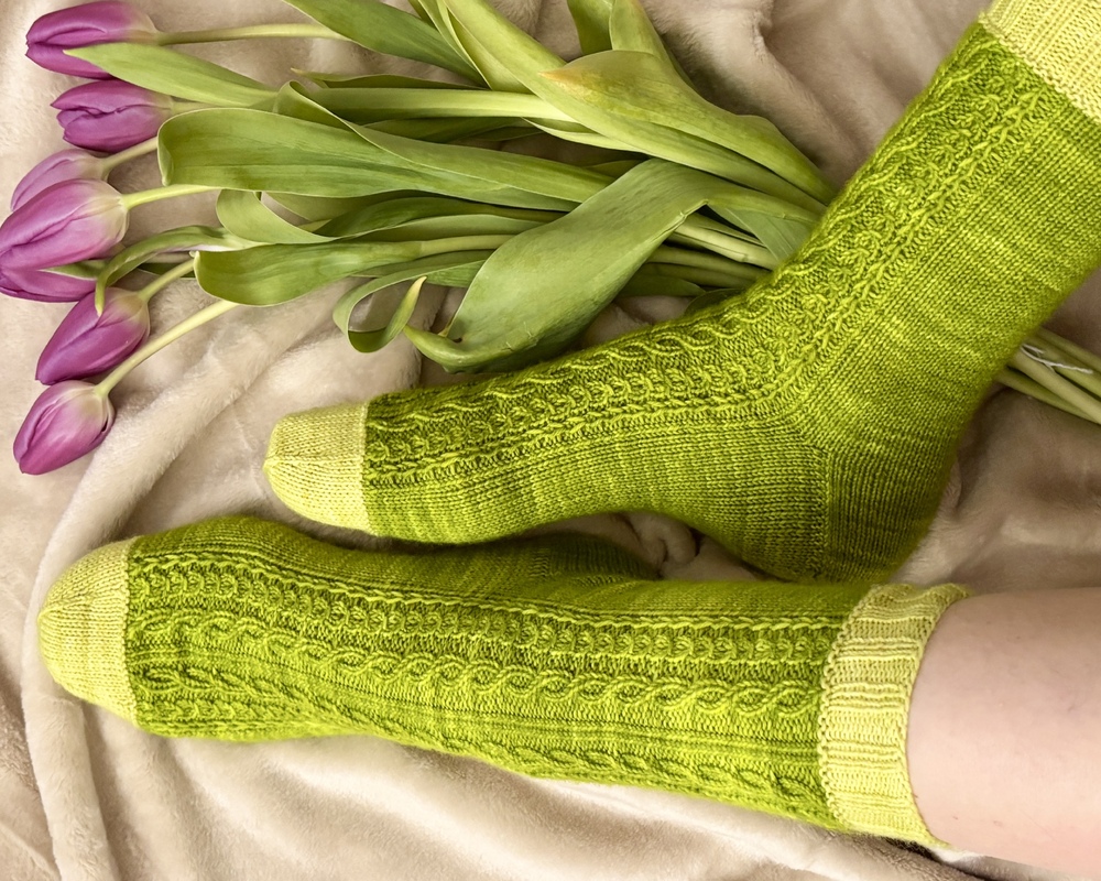 Verdina Socks sind top-down gestrickte Socken mit einem wirkungsvollen Muster auf dem Schaft, das deutlich aufwendiger aussieht, als es zu stricken ist. Die Anleitung enthält einen Chart, viele Fotos und führt Schritt für Schritt verständlich durch alle Arbeitsschritte, dabei ist besonders die Ferse ausführlich beschrieben.